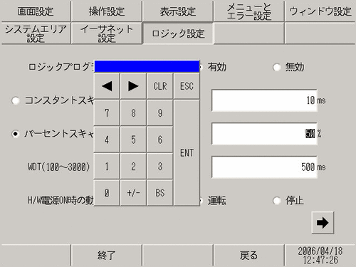 [パーセントスキャン]の入力枠をタッチし、テンキーでロジックプログラムのスキャンを実行する割合を入力してください。