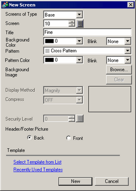 In [Screens of Type] select [Base], in [Screen] enter 10, and click [New].