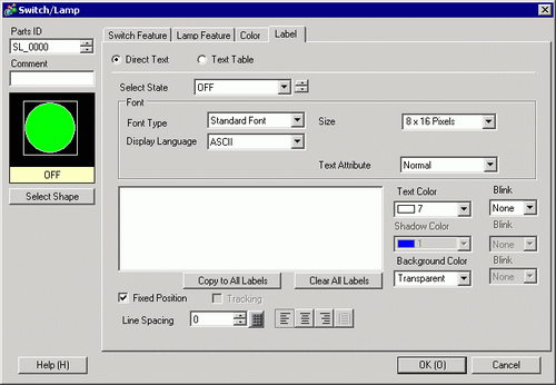 When you select a lamp and press the [F2] key, you can directly edit the text on the label. When [Text Table] is selected, you can change the current Text Table.