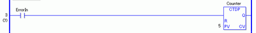 When the current value .CV is less than 0, the counter output bit .Q turns ON. When the counter reset bit variable .R turns ON, the preset value .PV is copied to the current value variable .CV. And, the counter output variable .Q turns OFF.