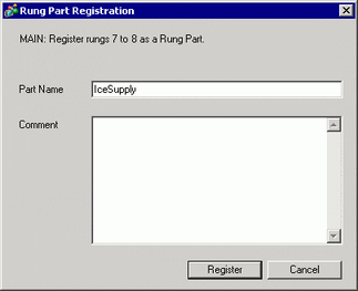 From the [Logic (L)] menu, point to [Parts (M)], and click [Save Selected Rungs (R)]. The [Rung Part Registration] dialog box appears.