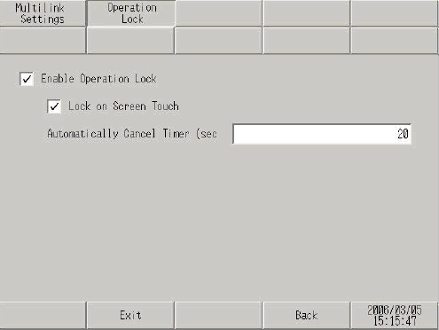 When touch operations on the display unit that activated the lock stop are locked, set the period in seconds until the operation lock is released.