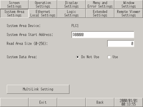 Set the number of words for [Read Area], where data used in common with all screens and block display data for trend graphs is stored. 0 to 256 words.