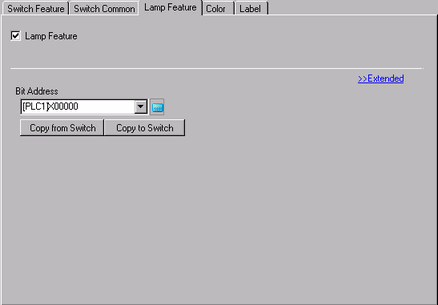 The [Lamp Feature] tab's [Bit Address] setting is copied to the [Switch Feature] tab's [Bit Address]. This is used when setting a Lamp Feature and Switch Feature to the same address.