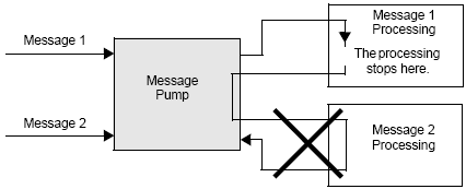 If it takes a long time to process Message 1 at this point, the message pump does not return and the message pump processing 2 cannot be performed.