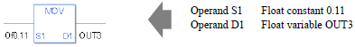 The MOV and MOVP instructions always pass power. When using the MOV and MOVP instructions, if the variables specified in operands S1 and D1 are not the same type, an error will occur. Designate the same variable type in all operands S1 and D1.