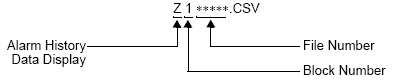 File name is "Z******.CSV". The block number (1 to 8) and file number (00000 to 65535) appear in the asterisks (******).