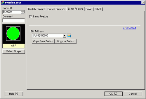 The [Switch Feature] tab's [Bit Address] setting is copied to the [Lamp Feature] tab's [Bit Address]. Use this option when setting a Lamp Feature and Switch Feature to the same address.