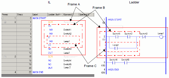 . An SOR (Circuit Starting Point) is inserted into the rung next to the MAIN START, and then a box for adding an instruction is displayed.