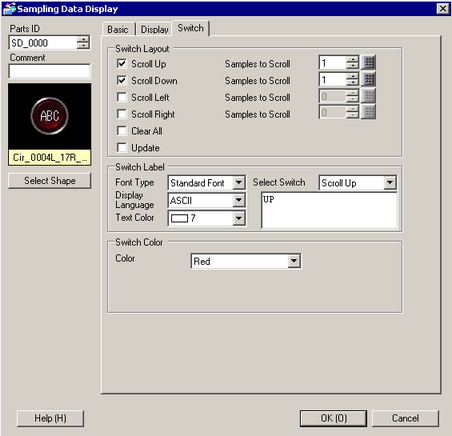 When selecting a switch to place, set how many rows or columns it will scroll when pressed.