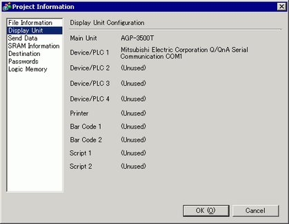 Displays the type or name of the specified devices/PLC and peripheral devices. Displays [Unused] for unused devices.