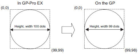 If you set the width or height of the circle/oval to an even number, it will be drawn with one less pixel on the display unit.