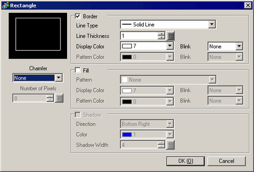 to place a rectangle on the screen. Double-click the placed [Rectangle] to display the following dialog box.