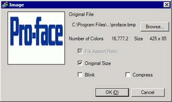 The following [Image Registration] dialog box will appear. Set the size and blink rate for the image to paste.