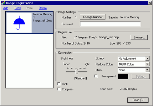If required, add comments to images, set the brightness or colors, and then click [Close] . Image registration is complete.