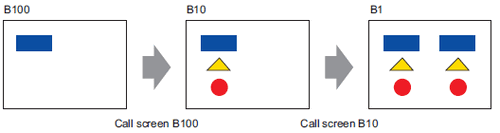 While creating the project, if the computer memory capacity gets low, and the screen is set up with multiple levels of call screens, the nested screens may not appear on the editor. However, once transferred to the display unit, they will display properly.