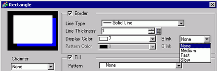 Blink is a feature to display colors of the objects in blinking on the display unit. For 3-Speed Blink, you can select from 3 blink speeds (Slow, Medium and Fast).