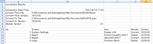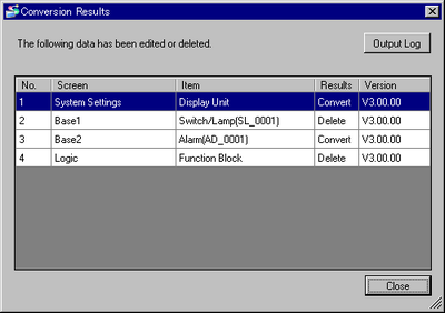 A [Conversion Results] dialogue box appears when data has been changed or deleted when a project file has been converted to a previous version. Confirm the applicable locations and correct as required.