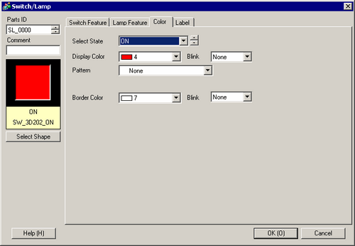 Click the [Color] tab. Confirm that [Select State] is OFF and set the color of the switch for the OFF state. For the [Display Color], click