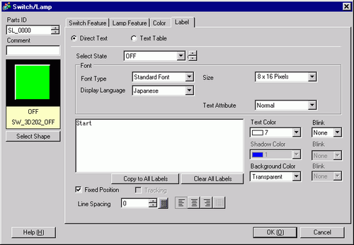 in [Select State] to select OFF, and input the text to display on the switch in the OFF state.