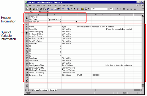 In the [Edit Symbol Variables] window, click [Utility] and then click [Export] to output information on the symbol variable settings as a CSV-format file as follows.