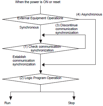 While the power is ON, when [External Equipment Operations] is set to [Synchronous], it checks whether communication synchronization is established even when [Logic Program Operation] is set to [STOP].