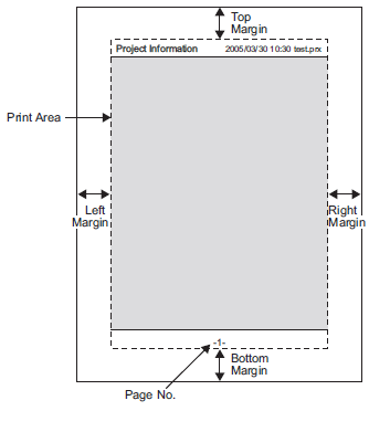 The print item name is printed on the top left corner, and the printout date/time and the project file name on the top right corner.