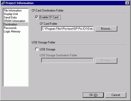 The CF Card Folder is the location where created data is temporarily saved inside the project. The data saved here is saved to the CF Card via a screen transfer.
