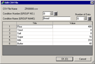 When you wish to edit the data, display the [Edit CSV File] dialog box according to the following method and edit it.