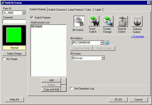 On the [Parts (P)] menu, point to [Switch Lamp], and select [Bit Switch (B)], or click