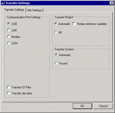 In the [Transfer Settings] area, confirm that the USB or LAN option is selected. If neither [USB] nor [LAN] is selected, display the [Transfer Settings] dialog box and in the [Communication Port Settings], select either [USB] or [LAN] and click [OK].