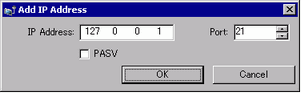Click [Add], enter [127.0.0.1] in the [IP Address] field, and click [OK].