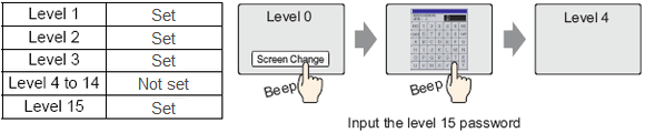 Example 1, when passwords are set as follows and the screen changes to a level 4 screen