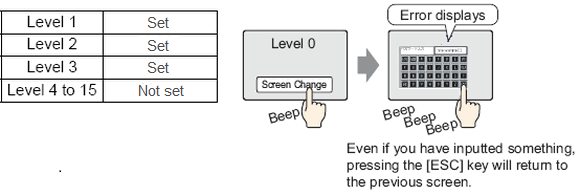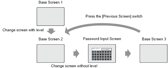 After changing to a screen with a security level, [Previous Screen] switch operates as follows when screens are set up in the same hierarchy.