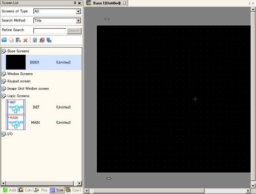 To create a screen without configuring communication settings for the device/PLC series, click [New Screen]. The screen editor will display [Base 1].