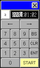 Starts search. The search conditions are updated and the keypad closes. However, the search will not start if the specified value is out of range. (For example, if you enter a number other than 0 - 59 for minute or second.) |
