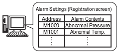 When the Monitoring Bit Address turns ON, the Alarm messages scroll across the screen.