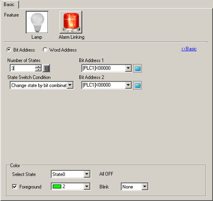 Set up an address. The lamp display will change depending on the bit status of the address designated here and the [State Switch Condition].