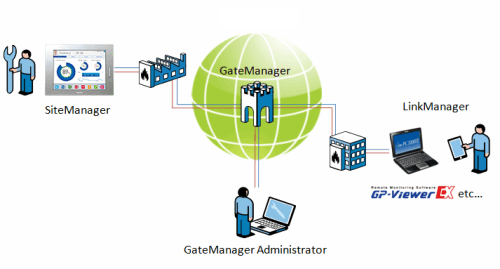 Pro-face Connect is structured to connect display units on the work site (SiteManager), with computers or tablets in the office (LinkManager), over a server (GateManager).