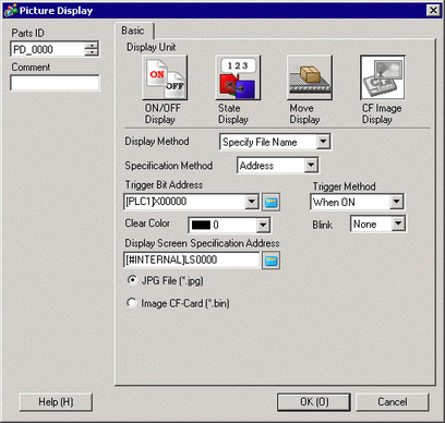 For example, displaying an image file (LOGO.bin) in the [DATA]folder in the CF card (Display Screen Specification Address: LS1000)