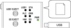 Touch either the [USB storage eject switch] or [SD card eject switch] to restart the GP-4G01.
