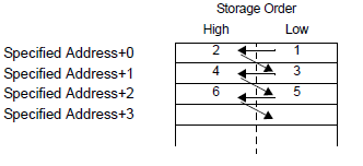Regardless of the storage order setting of Text Data Mode, the storage order is fixed to L/H (little endian).