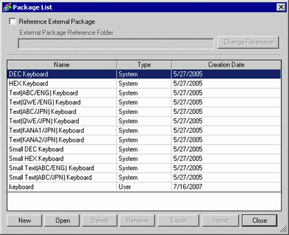 Select the package name (for example, Keyboard) that is registered with the keypad you want to use, click [Open], and the [Package] dialog box appears.