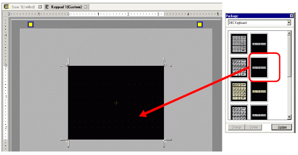 When [Keypad (B)] is selected from the [Parts (P)] menu, the [Package] dialog box displays, from which it can also be selected.
