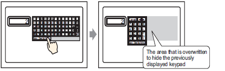 The clear area is the redraw area, especially useful when switching between a large keypad to a smaller keypad to hide the previously displayed keypad. You can draw keypad parts, keypad keys, data displays, text, and graphics in this area.