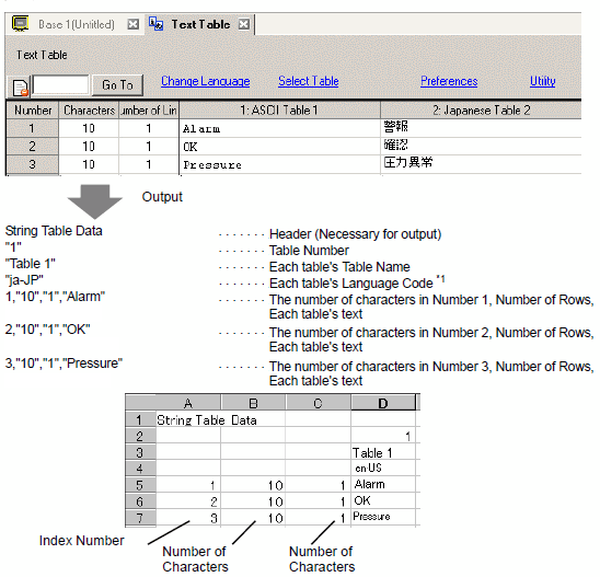 *1 Text Table files (*.txt or *.csv) displays each table's language with the following language codes.