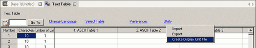 When you completed the entry to Text Table, select [Create Display Unit File] from [Utility].