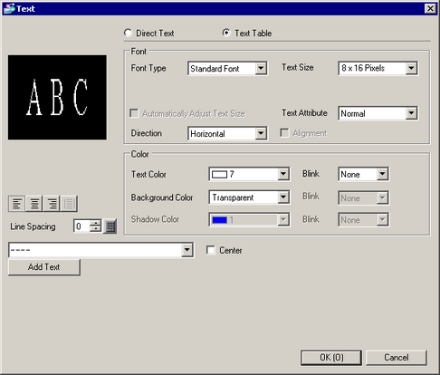 If you select [Add Text], the dialog box appears and you can add new text in the Text Table.