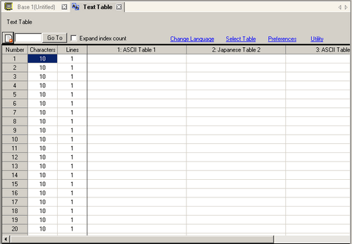 Select how to handle message input and browsing in the Text Table. From the [View (V)] menu, select [References (O)], and open the [Text Table] editor.