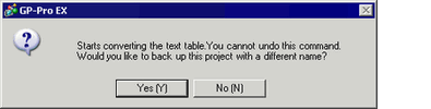 When the edited project is not saved, the following message appears before proceeding to the Text Table Converter dialog box.